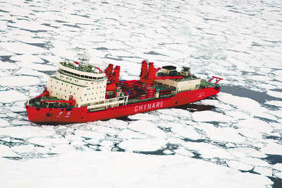 待到破陸緣冰時(shí),雪龍船將會(huì)顯露“啃冰”本色。陸緣冰到底有多硬?考察隊(duì)里有見(jiàn)識(shí)過(guò)的人說(shuō),拿鐵家伙去砸,也就能留下個(gè)指甲印。而雪龍船在破1米厚的陸緣冰時(shí),航速可達(dá)1.5海里/小時(shí)。遇到特別厚的陸緣冰,雪龍船也難免會(huì)“啃”不動(dòng),有的時(shí)候一小時(shí)才能拱個(gè)100多米。這時(shí)候就會(huì)尋找陸緣冰的薄弱環(huán)節(jié),迂回前行。(余建斌)