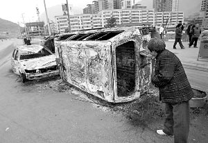 李學(xué)春說,目前,隴南市紀(jì)委、團(tuán)市委、市婦聯(lián)、市總工會(huì)、市信訪局、市檔案局等機(jī)關(guān)單位辦公設(shè)施及文件資料全部砸壞燒毀,已不具備辦公條件;市檔案局大部分檔案被燒毀;中樓職工宿舍全部被砸燒,私人財(cái)產(chǎn)損失嚴(yán)重;與此同時(shí),不法分子將停放在長江大道的7輛警車砸毀并焚燒。