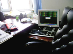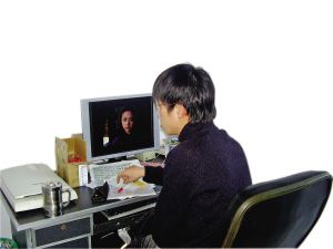 11時15分,未到午休時間,部分工作人員已經(jīng)穿好棉衣,相互招呼著準(zhǔn)備出去吃飯。在二樓的走廊里,“滴滴……”一連串QQ傳遞信息的聲音傳來,循著聲音記者來到了248辦公室外。透過虛掩的房門,記者看到一名30多歲的男子正專心地對著電腦忙碌著。