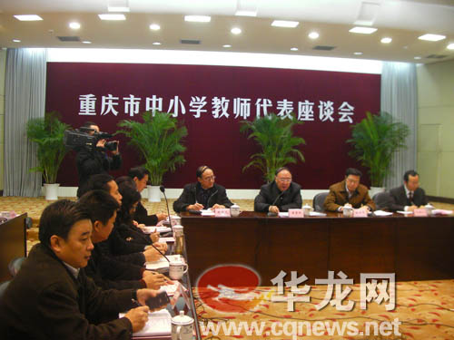 今日上午11:00,“重慶市中小學(xué)教師代表座談會(huì)”在重慶市人民政府舉行。中共重慶市委常委、重慶市人民政府常務(wù)副市長(zhǎng)黃奇帆,就我市農(nóng)村義務(wù)教育階段教師待遇有關(guān)問題,與來自黔江、永川、彭水、巴南、綦江等區(qū)縣的我市中小學(xué)教師代表進(jìn)行了交流座談。