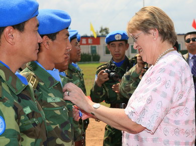 洛伊女士熱情贊揚了中國對聯(lián)合國維和事業(yè)的支持。她說,自2004年3月第一支部隊抵利以來,中國維和部隊為利和平進程和人民生活改善做出了重大貢獻。這充分顯示了中國政府和人民對聯(lián)合國在利維和行動的支持,積極幫助利實現(xiàn)和平、安全、復興與發(fā)展。她高度贊賞中國維和部隊的出色表現(xiàn),稱贊中國三支維和分隊的領(lǐng)導“指揮有方”,中國軍隊是“中國的驕傲”。她還對中國工兵分隊在任務(wù)期即將結(jié)束之際仍愉快受領(lǐng)任務(wù),修建連接利東南兩州首府要道上的橋梁表示感謝,相信他們一定能出色完成任務(wù),造福于利人民。洛伊最后勉勵維和官兵為了實現(xiàn)和鞏固世界和平與安全而繼續(xù)努力。