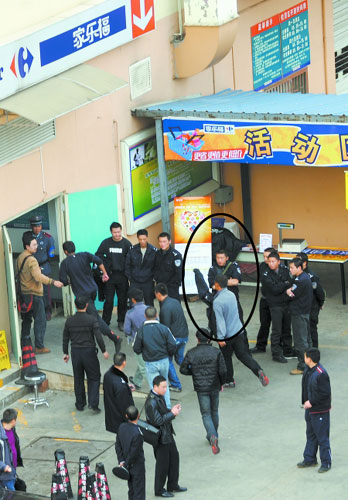 據(jù)當(dāng)時在現(xiàn)場的民警介紹,接到要擊斃劫匪的任務(wù)后,周警官很快進入家樂福,并在收銀臺下面藏好了身,位置距離當(dāng)時陸志文劫持人質(zhì)的家樂福風(fēng)險控制部只有七八米遠。風(fēng)險控制部的位置非常隱蔽,并沒有外墻開窗的便利條件,警方無法從商場外面實施射擊。