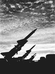 突然,霹靂震天,地平線上猛地躥起一條條“火龍”,拖著銀白的煙柱直刺蒼穹。轉(zhuǎn)眼,“火龍”變作一顆顆熾熱的流星,怒吼著、呼嘯著,把一架架行蹤詭秘的“敵”機(jī)打得粉身碎骨……