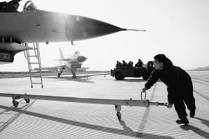 深夜中的基地,傳來(lái)一陣悶雷般的轟鳴。憑窗遠(yuǎn)眺,新型戰(zhàn)機(jī)試車的尾噴火焰映紅了夜空。