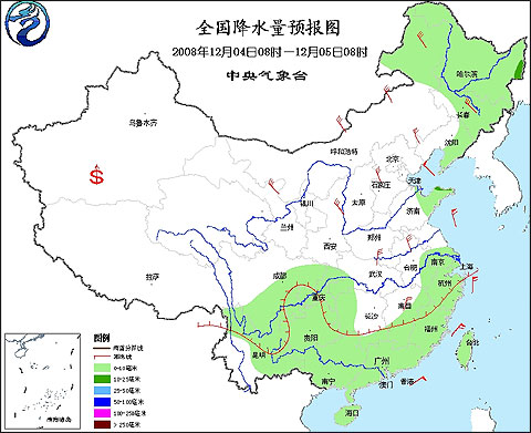 2008年12月4日8時—12月5日8時全國降水量預(yù)報圖