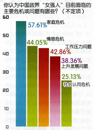 57.61%的受調(diào)查者認為,政界“女強人”面臨的主要危機是“家庭危機”