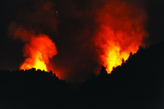 昨日凌晨1時,記者連夜趕到三口鄉(xiāng)華湘村時,遠(yuǎn)遠(yuǎn)就看見山上火光沖天。