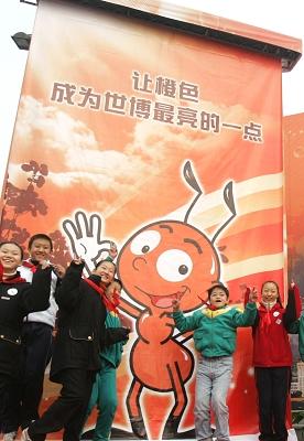 20日,代表志愿者的橙色成為申城的主打色。作為世博城市文明志愿者的一個集中活動日,逾5萬名志愿者走上街頭、走進社區(qū),開展以世博宣傳、交通文明和環(huán)境保護為主要內(nèi)容的志愿服務活動,服務項目共計1000余個。在活動主會場——和平公園,以勤勤懇懇的小螞蟻為原型的世博城市文明志愿者卡通形象“小志”正式揭曉,將在今后不到兩年的時間內(nèi)傳遍上海的大街小巷。