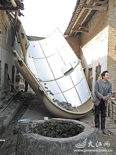 12月23日9時15分左右,當天上午發(fā)射的“風云二號”06星整流罩的一半掉落在我省(江西)龍南縣九連山古坑村,該縣人武部已將該部分殘骸成功收回(見圖)。
