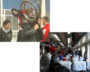 1月7日中午,在駐馬店市火車站,當(dāng)從漢口開往包頭的1482次列車到站之后,記者見到了大批從南方提前返鄉(xiāng)的農(nóng)民工涌出車站,他們通常是全家一道,背著大大小小的行李,有很多春節(jié)后不打算再外出務(wù)工的人把面盆、自行車等生活用品也都背回了家鄉(xiāng)。
