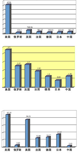 中國國防費總額、軍人人均數(shù)額,仍低于世界一些主要大國的水平。2007年,中國年度國防費相當(dāng)于美國的7.51%、英國的62.43%。軍人人均數(shù)額是美國的4.49%,日本的11.3%,英國的5.31%,法國的15.76%,德國的14.33%。從國家國防負(fù)擔(dān)的相對比例看,中國國防費僅占國內(nèi)生產(chǎn)總值的1.38%,而美國占4.5%,英國占2.7%,法國占1.92%。