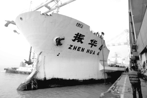 昨天夜里11時,“振華4”號輪靠上上海橫沙錨地。