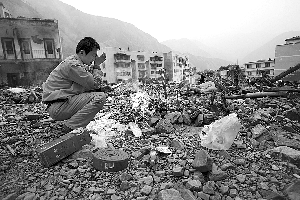 昨晚,北川縣委宣傳部部長韓貴鈞說,之前縣里在任家坪半山腰上修建了一條水泥路,并在半山腰搭建三座觀景臺,方便人祭拜。臘月二十三到年三十,是當?shù)貍鹘y(tǒng)的祭拜親人的日子,為了滿足災民祭拜要求,當?shù)卣疀Q定,北川縣城向居民開放。