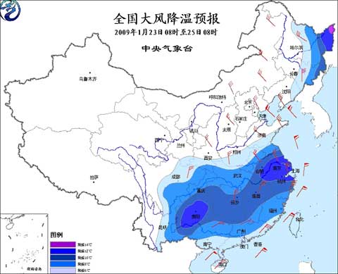 受強冷空氣東移南下影響,未來兩天,西北地區(qū)東部、內蒙古中東部、華北、東北地區(qū)、黃淮、江淮、江漢、江南北部等地將有5~7級偏北風,江南中南部、華南北部以及四川盆地北部等地將有4~6級偏北風,上述地區(qū)的江河湖面風力可達6~8級;東北地區(qū)東部和北部、黃淮、江淮、江漢、江南、華南以及西南地區(qū)東部等地的氣溫將下降6~10℃,部分地區(qū)降溫可達12℃以上。