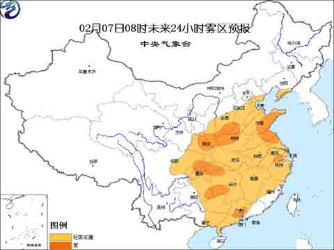 中央氣象臺今天早晨六點鐘繼續(xù)發(fā)布大霧預報: