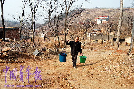 “面對(duì)這種情況,鄉(xiāng)里采取兩個(gè)步驟來解決張溝村人畜吃水難問題!本皶悦鲗(duì)中國青年報(bào)記者說,“首先是解燃眉之急。春節(jié)后,鄉(xiāng)里組織了4臺(tái)抗旱送水車,和武警部隊(duì)鄭州支隊(duì)的2臺(tái)送水車一起,開始為張溝免費(fèi)送水。爭取把每家每戶的水窖都裝滿。我們還準(zhǔn)備再打兩眼深井,把提灌和自來水的管網(wǎng)配套設(shè)施都弄好,把自來水送到每個(gè)村民家里!