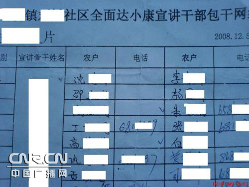 據(jù)村民說,為了順利通過小康驗(yàn)收,鎮(zhèn)里、村里開了三四次會(huì),干部們層層“承包”,挨家挨戶到每個(gè)有電話的村民家進(jìn)行動(dòng)員,保證調(diào)查時(shí)不說錯(cuò)話。對(duì)那些按照標(biāo)準(zhǔn)答案說好話的村民,進(jìn)行少則百元多則上千元的獎(jiǎng)勵(lì)。當(dāng)?shù)刂行W(xué)還專門給學(xué)生放了一天假,老師要求學(xué)生把標(biāo)準(zhǔn)答案背熟記牢,貼在電話機(jī)旁邊,協(xié)助家長應(yīng)對(duì)小康驗(yàn)收電話。