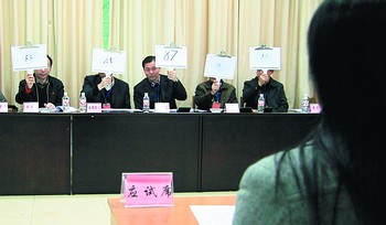 “通常的面試,每位考官的打分我們無(wú)法知道!弊蛉諈⒓用嬖嚨囊晃豢忌f(shuō)。為進(jìn)一步提高公開(kāi)選拔面試的民主、公正和透明度,此次面試考官評(píng)分首次實(shí)行當(dāng)場(chǎng)亮分。