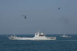 緊急出航的海上反恐艦艇編隊,向貨輪遭劫持海域全速航行,艦載機適時起飛偵尋。接到命令不到半小時,艦載機便發(fā)現(xiàn)目標。