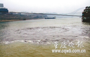 昨上午11時許,朝天門兩江交匯處約6平方米范圍的水域猶如開了鍋的水,突然接連冒泡。這一奇觀引來不少市民圍觀,以為是江里游來了大魚。沸騰的水面散發(fā)出陣陣惡臭,熏得圍觀者躲避不及。