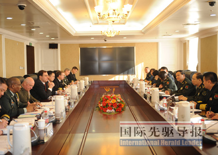 國際先驅(qū)導(dǎo)報記者熊爭艷 見習(xí)記者金微發(fā)自北京 2月27日,美國對臺軍售導(dǎo)致中美兩國軍事交流中斷后的第五個月,兩國國防部在北京舉行年度工作會晤。