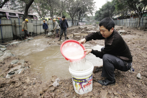 “快點接水,要停水了!”周圍居民聞訊馬上回家,趁著余水未流完之際,拿起桶桶、盆盆全部接滿,以備急需。爆管最開始為工地一工人發(fā)現(xiàn),立即通知自來水公司搶修。