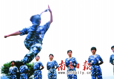 記者采訪(fǎng)了解到,該部隊(duì)組建伊始,是一個(gè)由醫(yī)院護(hù)士,總機(jī)班女兵,演出隊(duì)女兵拼湊起來(lái)的“雜牌”軍。自從該旅提出要把女兵隊(duì)由表演隊(duì)鍛造成戰(zhàn)斗隊(duì)后,這群女兵便開(kāi)始了新的征程。五公里、戰(zhàn)術(shù)、障礙等訓(xùn)練科目一個(gè)不落,舞劍、捕獲等特色科目齊頭并進(jìn),就連男兵很少練齊全的陸上駕駛、海上駕舟、空中突降等特種科目也全納入了她們的訓(xùn)練內(nèi)容。