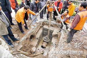 市自來水公司副總經(jīng)理姜源說,此次爆裂的是根300毫米過街水管,造成大坪白云賓館至渝州賓館沿線3萬多人停水。爆裂水管橫貫大(坪)石(橋鋪)路,該路是主城交通大動脈,他們決定不挖路面,棄用過街水管另鋪新管。