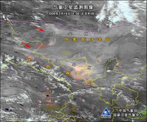 14日白天,內蒙古西部出現沙塵暴,甘肅民勤出現能見度僅300米的強沙塵暴。當天內蒙古、青海、甘肅、寧夏等地有6-7級風,局部地區(qū)達8級。今天當地的風力減弱了,但部分沙塵會順著強勁的西北風向東推移。北京今天正處于西北氣流控制,因而受到“牽連”。