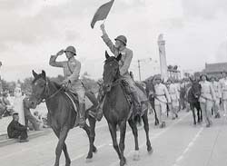 紅馬隊、黑馬隊共1900余匹戰(zhàn)馬組成的騎兵師方隊,繼步兵師、炮兵師、戰(zhàn)車師之后,通過天安門前,成為此次閱兵的“壓軸戲”。此后,騎兵部隊又參加了1950年、1951年、1952年、1953年和1954年國慶閱兵。建國初期的6次大閱兵,騎兵方隊以雷霆萬鈞之氣勢,排山倒海之陣容,彰顯了我軍騎兵部隊的赫赫戰(zhàn)功和浩然雄風,給全國軍民極大振奮。