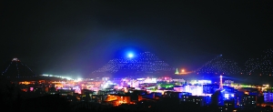 這個(gè)人造月亮是個(gè)5平方米的大屏幕,它和周圍數(shù)千盞太陽(yáng)能燈一起,照亮鳳縣的夜空。晚上向縣城望去,群山上如同銀河倒掛。