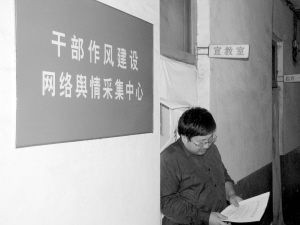 位于行唐縣委辦公樓一層的行唐縣紀(jì)委宣教室,因?yàn)椴⒉恢苯訁⑴c查處違紀(jì)案件,很少接受群眾的建議和舉報(bào)。但是眼下,宣教室僅有的兩名工作人員每天卻忙得團(tuán)團(tuán)轉(zhuǎn),這間小小的辦公室成了匯集43萬(wàn)行唐人通過(guò)QQ、專(zhuān)用信箱反映訴求的中心。這一切,都是因?yàn)檫@間辦公室門(mén)外悄悄掛了一個(gè)紅色的新牌子——干部作風(fēng)建設(shè)網(wǎng)絡(luò)輿情采集中心。