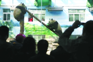 上午10時,在大熊貓館已擠滿了游客,他們紛紛拍照、攝像留念。游客張然說,他家住在通州區(qū),早晨6時就乘車出發(fā)了,7時多一點就到動物園了。拿著手中的相機,張然告訴記者,他在這拍了100多張了,記者看到,幾乎每只大熊貓的各種動作都拍全了。