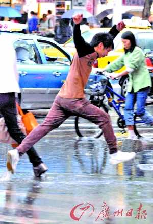 昨日下午5時30分起,廣州市城區(qū)今年降了首場大暴雨。這次短歷時強(qiáng)暴雨造成白云區(qū)、天河區(qū)、黃埔區(qū)、荔灣區(qū)、海珠區(qū)、越秀區(qū)出現(xiàn)水浸,市區(qū)共出現(xiàn)54個水浸點(diǎn)。各地較嚴(yán)重的水浸點(diǎn)水深達(dá)到1米多,其中崗頂?shù)乃斐纱蠖萝,記者也在行?jīng)中山大道的公交車被困兩小時,著實(shí)有些被憋暈了的感覺。
