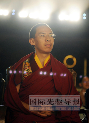 當天下午,班禪與國家宗教局局長葉小文等人一起觀看大型音樂史詩情景劇《吉祥頌》,演出結(jié)束后,班禪在舞臺前方先后以藏語、漢語和英語說道,“我祈愿世界和平,佛祖保佑,六道眾生!毕愀邸洞蠊珗蟆吩u論稱,在本屆論壇上,年僅19歲的十一世班禪出人意料地頻頻亮相,成為備受各方矚目的“頭號明星”。