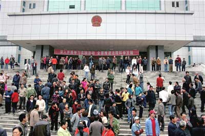 昨天早晨不到8點,在習(xí)水縣法院大樓前,除了新華社、中央電視臺、中國青年報等眾多媒體記者外,還聚集了大量群眾!傲(xí)水出了這樣大的丑聞,很丟臉!币幻(dāng)?shù)厝罕娬f,他想看看,究竟是一些什么樣的人這樣喪盡天良。