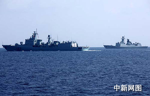 中新網(wǎng)4月13日電 據(jù)中央電視臺報道,中國海軍兩批護航艦艇編隊今日正式會合,并舉行了簡短莊重的會合儀式。