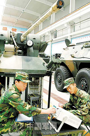 戰(zhàn)車上,戰(zhàn)士們正在細(xì)心地檢查每一部件,特別是對(duì)裝甲戰(zhàn)車的油路、電路和發(fā)動(dòng)機(jī)等關(guān)鍵部位進(jìn)行反復(fù)調(diào)試。旁邊的一塊小黑板上,貼著一張記錄每臺(tái)戰(zhàn)車性能指標(biāo)和保養(yǎng)重點(diǎn)的表格。戰(zhàn)士白勝告訴記者:“別看是所有戰(zhàn)車同時(shí)保養(yǎng),要是哪臺(tái)車沒能達(dá)到保養(yǎng)規(guī)定要求,攝影頭會(huì)立即把信息反饋給保養(yǎng)綜合信息平臺(tái)!