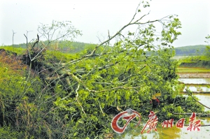 昨日凌晨,河源市東源縣順天鎮(zhèn)楓木、橫塘等5個山村不同程度地遭受到龍卷風、冰雹的突然襲擊,導致當?shù)卮笃r田受災,數(shù)千株板栗樹被龍卷風摧倒,據(jù)當?shù)叵嚓P部門昨日下午統(tǒng)計,直接經濟損失估計逾達860多萬元,所幸未造成人員傷亡。