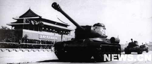 隨后,騎兵部隊(duì)過來(lái)了。在騎兵部隊(duì)的后面,防空部隊(duì)過來(lái)了,牽引炮兵部隊(duì)過來(lái)了,摩托化步兵過來(lái)了,裝甲兵部隊(duì)過來(lái)了。他們操縱著全世界第一流的武器。各種口徑的大炮和各種輕重型坦克,構(gòu)成一個(gè)鋼鐵的巨流,在檢閱臺(tái)前走過。