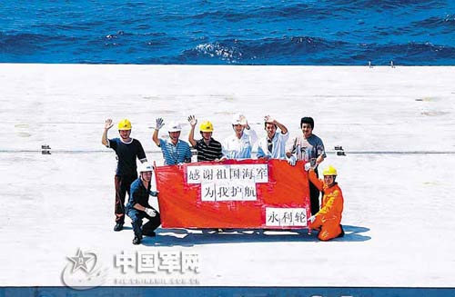 當(dāng)?shù)貢r(shí)間4月21日6時(shí),海軍第二批護(hù)航編隊(duì)開始中國(guó)海軍在亞丁灣、索馬里海域的第44批護(hù)航。接受護(hù)航的船舶通過(guò)不同形式表達(dá)對(duì)偉大祖國(guó)和護(hù)航海軍的感謝。本報(bào)記者夏洪平、通訊員駱源攝影報(bào)道