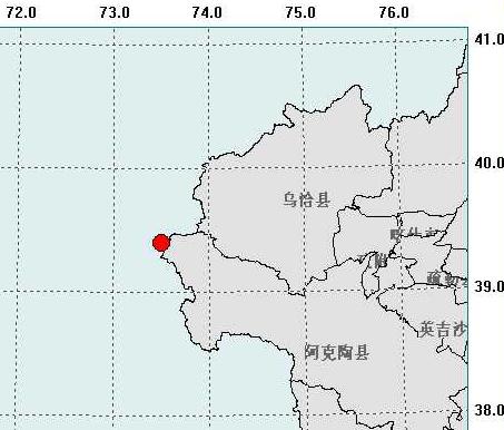 據(jù)測(cè)定,震中位于北緯 39.4°,東經(jīng) 73.5°,地處新疆克孜勒蘇柯爾克孜自治州阿克陶縣邊境線上。