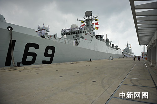 當(dāng)天上午九時(shí)許,創(chuàng)造中國(guó)海軍多項(xiàng)歷史、功勛卓著的“武漢”號(hào)、“?凇碧(hào)導(dǎo)彈驅(qū)逐艦緩緩駛?cè)?三亞某軍港碼頭,受到岸上社會(huì)各界的熱烈歡迎。