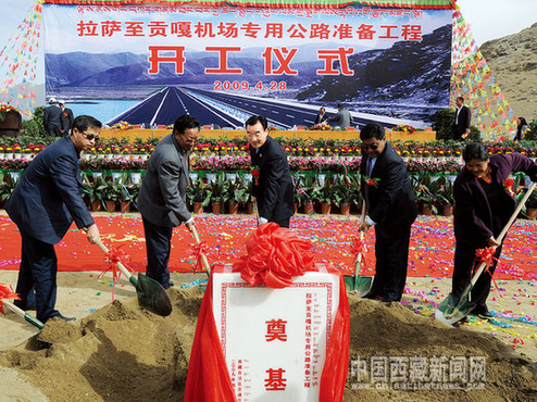 4月28日上午,西藏第一條高等級公路——拉薩至貢嘎機場專用公路準備工程正式開工奠基,這標志著西藏干線公路建設目標從通暢向快捷的轉型。