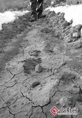 據(jù)介紹,干壩村所處海拔超過1300米,由于缺水易干旱得名。羊皮寨小組有一個(gè)水源點(diǎn),不過進(jìn)入3月后,水變得越來越小了,就連那里61戶人家的人畜飲水都不能保證,更不奢望有水澆灌烤煙地了。有村民告訴記者,不得已,他們開始用牛馬,或者用摩托車到很遠(yuǎn)的地方去馱水!拔覀円患胰艘惶煲100公斤左右的水,洗臉腳的水要節(jié)約下來煮豬食,有時(shí)就連人的尿液也要節(jié)約下來喂牲畜!币幻迕裾f。