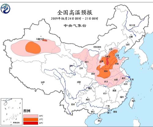 中新網(wǎng)6月24日電 據(jù)中國氣象局網(wǎng)站消息,今天白天,北京、天津、河北、河南以及山東等省成為太陽的重點“烘烤”對象,中央氣象臺今晨繼續(xù)發(fā)布高溫預(yù)報,預(yù)計上述地區(qū)今天的最高氣溫將到37~39℃,局地可達(dá)40℃。據(jù)中央臺專家介紹,這樣的高溫天氣會隨著一股南下的冷空氣,有望在26日結(jié)束。