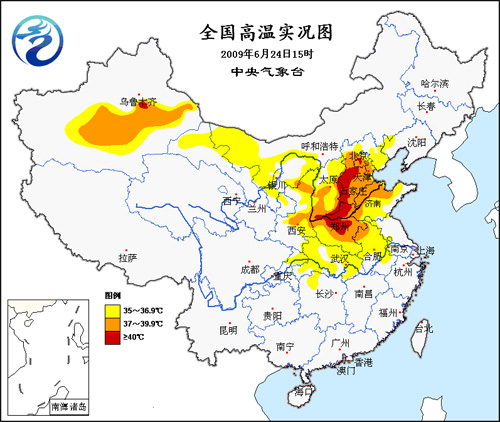 中新網(wǎng)6月24日電 據(jù)中國氣象局網(wǎng)站消息,中國華北、黃淮等地今日出現(xiàn)今年首次大范圍高溫天氣,石家莊、鄭州的最高氣溫甚至超過41℃。