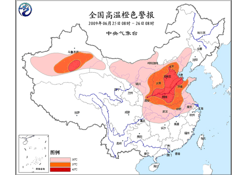 中新網(wǎng)6月25日電 據(jù)中國氣象局網(wǎng)站消息,中央氣象臺今天早晨六點鐘繼續(xù)發(fā)布高溫橙色警報:預(yù)計,今天白天,華北大部、黃淮、江淮、江漢、江南北部及陜西大部、寧夏中北部、甘肅北部、內(nèi)蒙古中西部和新疆南疆盆地有35℃以上的高溫,其中,河北大部、京津、山西大部、山東大部、陜西東部、河南、安徽中北部、江蘇西北部及南疆盆地東部等地最高氣溫可達(dá)37~39℃,河北中南部、京津南部、河南中北部、山西南部、山東西部及南疆盆地東部等地局部氣溫可達(dá)40℃。