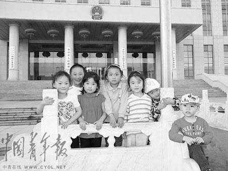 山西省和順縣縣委、縣政府新落成的辦公大樓門前,是一個(gè)開(kāi)放的廣場(chǎng)。這里沒(méi)有圍墻,也沒(méi)有武警、保安站崗,老百姓可以在這兒自由散步、乘涼,小孩子也可以在這里盡情地奔跑、玩耍。和順縣委書(shū)記侯文祿說(shuō),“和順”取的就是和美、和諧之意。政府執(zhí)政為民,就應(yīng)該讓老百姓分享改革的成果。圖為一群幼兒園的小朋友在廣場(chǎng)的國(guó)旗旗桿底座前合影。