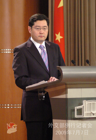 中新網(wǎng)7月7日電 據(jù)中國外交部網(wǎng)站消息,2009年7月7日,外交部發(fā)言人秦剛舉行例行記者會。答問如下: